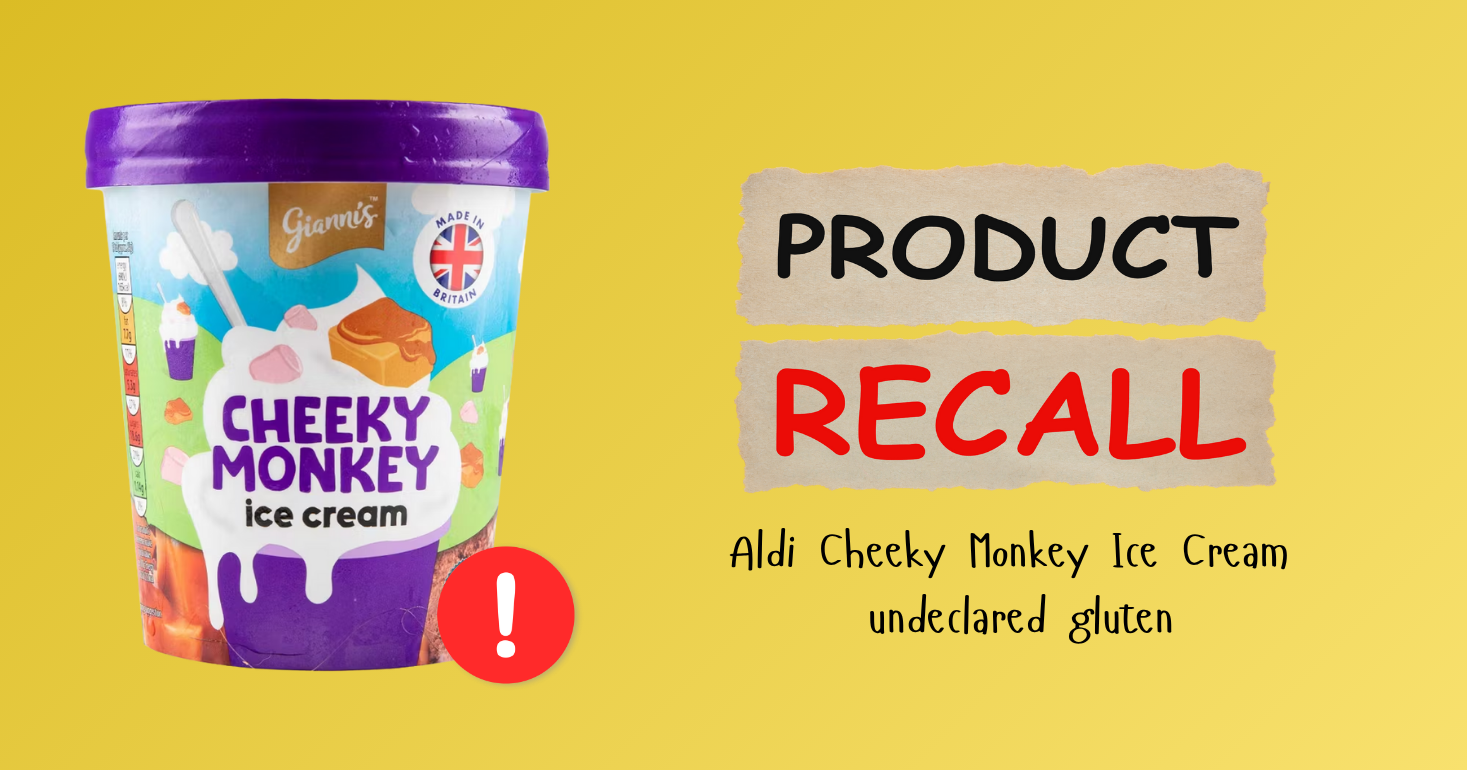 Thankfully product recalls don't happen too frequently when it comes to gluten but they do happen, the latest instance is due to undeclared gluten in Aldi's Giannis Cheeky Monkey Ice Cream, their dupe of popular Ben and Jerrys flavour Chunky Monkey, which ironically is one of their gluten free flavours.