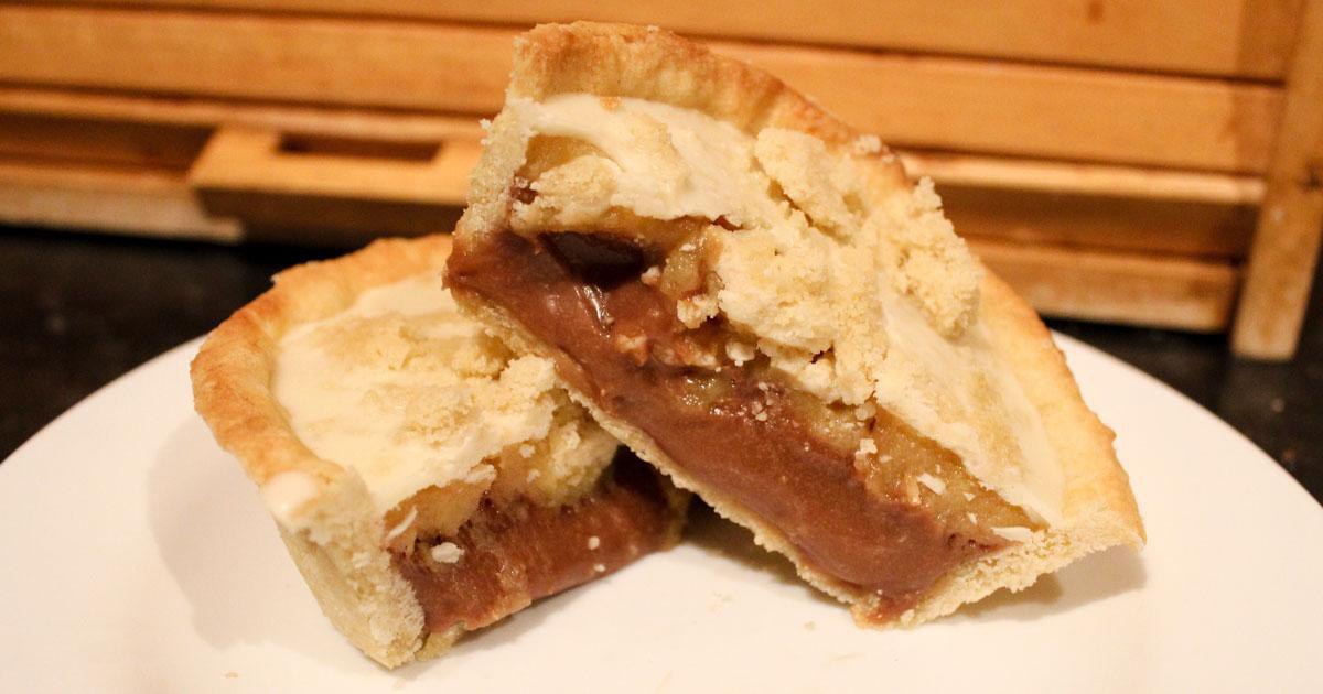 When the crumble has baked, melt the white chocolate and pour on top of the caramel, sprinkle the crumble over the top and then refrigerate to set the chocolate. Leave the tart to chill for at least another hour however over night will ensure everything is well set before serving.